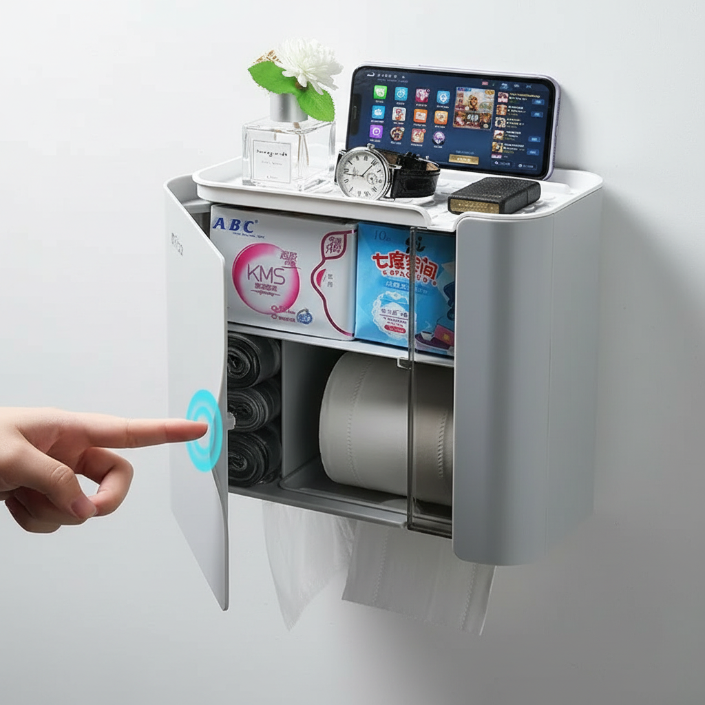 Sleek design meets practical function in this waterproof tissue holder